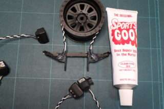 ラジコンカーのボティ裏側にLED配線を固定るときってテープでもいいのですが、LEDライトを固定したついでにプチルゴムを使っても簡単に固定できます。